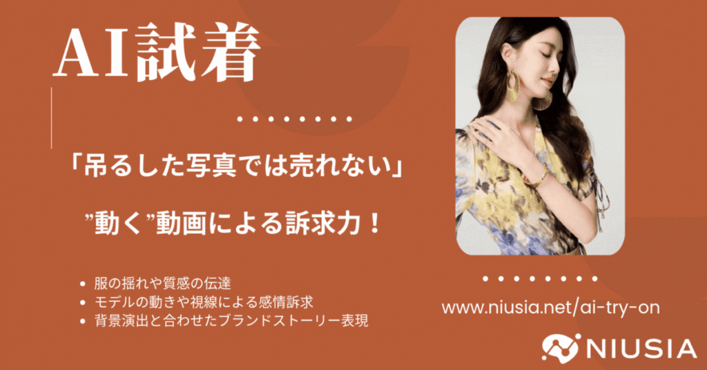 スタジオ撮影ゼロで、服の魅力を最大限に伝える“動的コンテンツ”が誕生します。